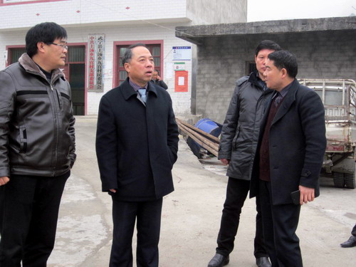 经过三个多小时的车程,甘校长一行抵达九宫村。武宁县人大副主任陈绪洲陪同走访慰问。在村部,甘校长听取了乡党委赵书记关于村建扶贫的情况汇报,询问了九宫村的基本情况、村民的生产和生活状况、经济收入来源等。当得知三年来学校对九宫村开展的帮扶所取得的成效,甘校长深感满意。随后甘校长一行来到九宫村新农村建设点,实地查看了村容村貌。