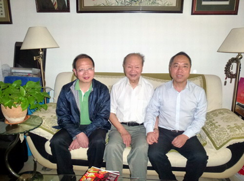 随后,甘校长一行还拜访了著名历史学家、清华大学国家级“出土文献和中国古代文明研究协同创新中心”主任李学勤先生。李学勤先生热情接待了甘校长一行,并再次祝贺甘校长团队去年获得季羡林基金会颁发的“国学传承与创新”奖。甘校长向李学勤先生详细介绍了“中华经典公理化诠释”研究的创意、特点、目标和系列成果。李学勤先生充分肯定这项研究的开拓性及其价值,认为它对于推动中华古代经典的现代阅读,尤其是对提升“国学”在海外的影响力,有很好的促进作用。