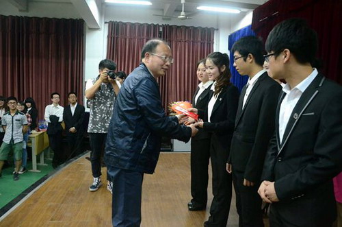辩论赛结束后,校团委负责同志、全体评委为获奖团队和个人分别颁奖。土建学院、信息学院、会计学院、政法学院、基础医学院、经管学院、外国语学院及电商学院等8个二级学院团委荣获优秀组织奖。信息学院A1311班二辩吴旖旎同学荣获全程辩论赛最佳辩手。