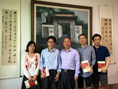 5月8日,应学校邀请,武汉大学外国语言文学学院院长杜青钢教授,副院长贾玉敏,副书记胡浩,翻译系副主任汪涛一行来校开展学术交流活动。校长甘筱青会见了杜青钢院长一行,双方就两校拟举办高校中法教育、学术交流高级研讨会,师资国学素养教育等进行了深入交流,达成初步共识。