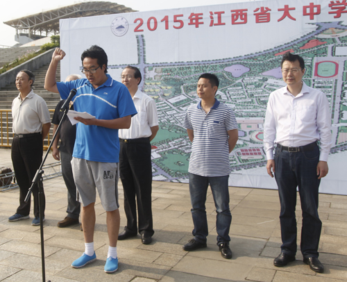 江西省学生体协秘书长揭宁元在致辞中,代表主办方向九江学院为本届比赛给予的强有力的支持表示衷心的感谢。向多年来给予江西定向越野运动大力支持、做出重要贡献的单位和个人表示衷心的感谢。他指出,定向越野既是一项智力测试,又是体能的竞赛,相信同学们经过系统的培训,今天能一展雄风,争取最好的成绩。