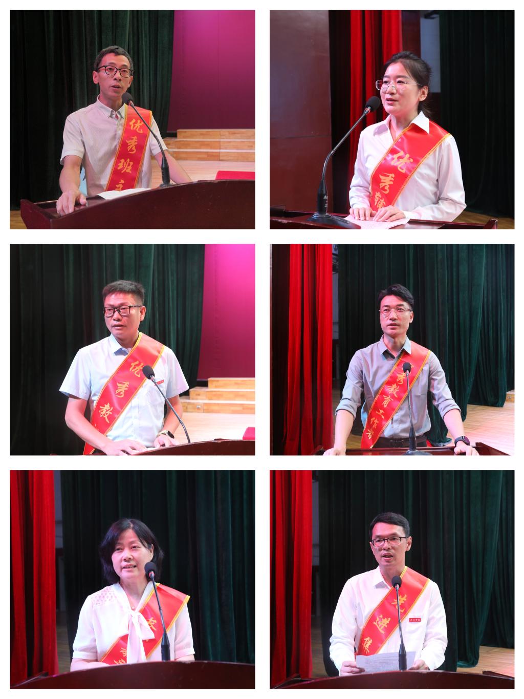 优秀教师代表杨前勇、优秀教育工作者代表李斌、优秀辅导员代表刘晓梅、优秀班主任代表熊厚锋、先进集体代表陈鹏及长期从教三十年教师代表李雪先后发言。他们用真挚的情感和朴实的话语,分享了各自在教育一线的实践与感悟,充分展现了九江学院教师队伍坚守初心、默默奉献、勇于创新的精神风貌,深深感染和激励了在场师生。