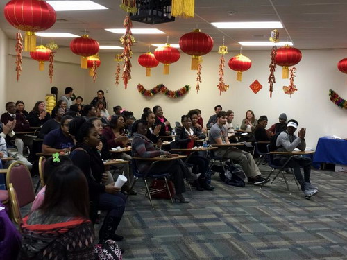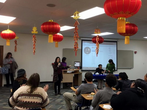 美国当地时间2015年2月18日晚,正值中国年味浓浓的大年三十,萨凡纳州立大学孔子学院师生80余人在精心布置充满喜庆的孔子学院教室欢聚一堂,共庆中国的传统节日——春节!