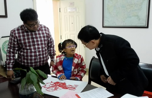 一直以来,市外专局的领导对我校聘请外籍教师的工作特别支持,对我校外籍教师的生活也分外关心。在一次走访中,外专局的领导了解到,我校外籍教师Raza的女儿不仅能说一口流利的普通话,还特别热爱中国的传统文化。听说这个小女孩一直有着学习中国传统手工艺--剪纸的心愿后,便把这件事放在心上,专门邀请瑞昌剪纸大师朱扑光亲自教授Isna学习剪纸。今天,在外专局副局长詹冬龙的帮助下,这个孟加拉的小女孩学习剪纸的心愿终于如愿以偿。