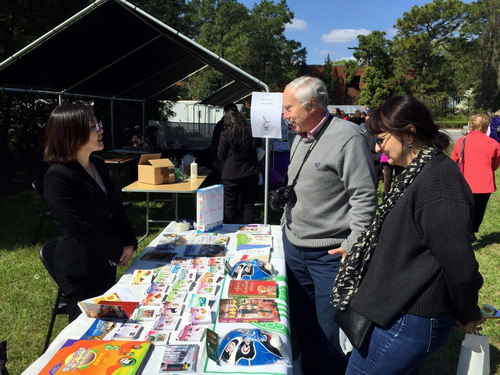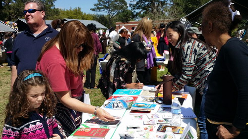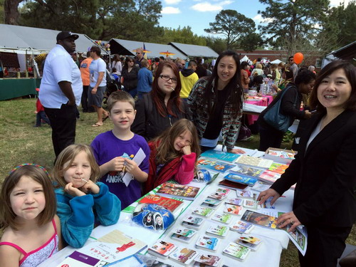 萨凡纳州立大学孔子学院以“学好中国语言,了解中国文化”作为参加此次活动的主题在亚洲节上设立宣传展位,还精心准备了中国文化书籍、各种汉语课程教材、汉字卡片、文化图片以及孔子学院本年度的活动方案和课程计划等宣传材料。文化节从上午十点一直持续到下午四点,孔子学院展台前吸引了不少前来参加文化节的市民,其中不乏孩子,大家对学习汉语和了解中国文化表现出极大的兴趣,都纷纷留下联系方式希望参加孔子学院下个阶段的汉语课程学习。外方院长布佩吉、中方院长罗其娟和汉语教师张春子在现场向前来咨询的朋友们进行介绍和答疑。