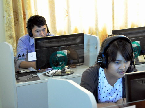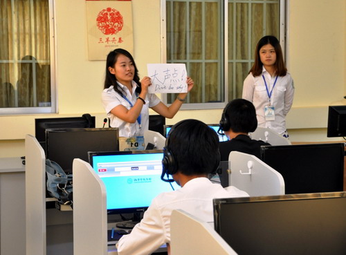 3月28日,柬埔寨王家研究院孔子学院本部成功举办首次汉语水平口语考试(HSKK),共有205名考生参加此次考试。