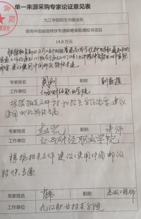 单一来源采购专家论证意见: